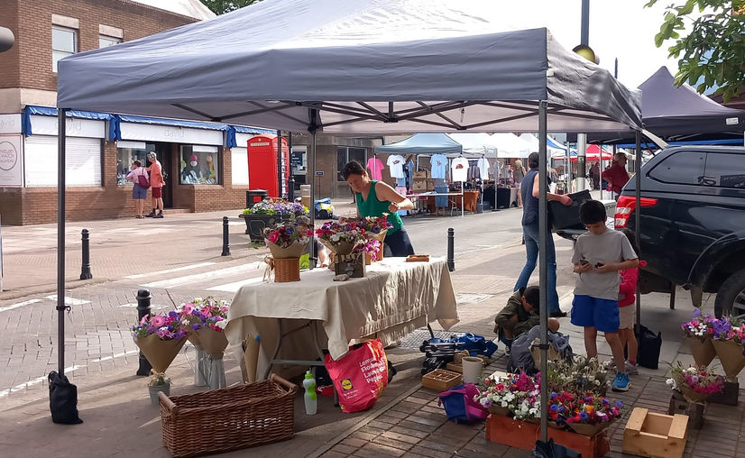MARKET DAY We walked through from the Station Road car park which had plenty of spaces and learn even the market traders had to pay to park. Early doors at Nailsea MicroPub was doing great al fresco business and as the summer air cooled the High Street and into Crown Glass Place shopping centre is filled with people shopping and going to eat out - see business man Rick Hand sat on edge of village green! Nailsea & Backwell Rotary manned their bookstall, singer Dennis DeMille entertained outside Coates House and The Conscious Fish Shop served delicious treats for queuing customers. The road was closed to traffic all day and the damaged planter which has been removed not to be replaced (North Somerset Council plead costs) allowed pedestrians to stroll in a traffic-free thoroughfare. Nailsea town councillors Rod Lees (newly elected chairman) and Ben Kushner sat at a table outside No65 to answer electorates questions - it was the blocked footbath between The Perrings and Backwell Lake plus car parking for disabled drivers top of their query list. Nailsea Labour Party stall welcomed North Somerset MP Sadik Al-Hassan (our feature about Sadik is HERE) on a meet and greet mission. 1st Nailsea Scouts were promoting the carnival just a fortnight away and selling programmes. And the food, drink, flowers, fruit & veg stalls along with jewellery, woodwork and textile artisans all did brisk business. We saw Nailsea Availables, Nailsea & District Community Transport and Willow Chiropractic offering support to people. The next market is 9am-10am on Saturday, July 19. Wiktoria (pronounced Victoria) Wiczling the new Polish-born market manager now living in Bath expressed her disappoint the stallholders had to pay to park as she took photos of the empty car park space