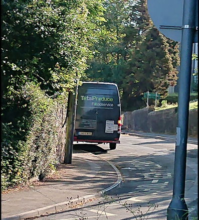 BLUE AND WHITE VAN: Lisa Brakspear took these photographs in September 2023 on a cornere of Whitesfield Road the narrow lane opposite the allotments. She said: "It's only a matter of time before someone is injured. We have several blind and particularly sighted people in Nailsea as well. It makes me wonder how they manage to negoiate around badly parked vehicles."